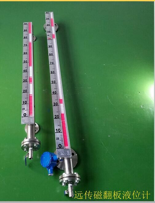 磁翻板液位計工作原理是基于磁耦合的物理特性,測量主體金屬內(nèi)腔管外的翻板箱受主體內(nèi)浮子(具有定向磁性源,按不同介質(zhì)和壓力針對研制)的作用促其翻板翻動并顯示紅白顏色,并隨浮子的移動指示不同的液面高度。在指示器左側(cè)配有醒目的刻度標尺,從而使液位的指示顯得更加清晰。SUB-UHZ磁翻板液位計由本體、翻板箱(由紅、白雙色磁性小翻板組成)、浮子、法蘭蓋等組成,用于各類液體容器的液位測量。
