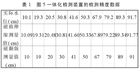 我們把圖5所示的一體化檢測裝置進(jìn)行了水位檢測實驗,其檢測結(jié)果與實際水位值見表1。