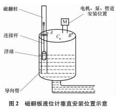 耐高溫磁翻板液位計安裝位置的選擇應根據(jù)該點的液位是否能真實反應酸槽實際液位。酸槽上耐高溫磁翻板液位計垂直安裝位置的選擇如圖2所示。