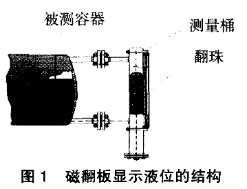 磁翻板是顯示液位的部分(見圖1)。磁翻板內(nèi)的翻珠內(nèi)裝有柱狀的磁鋼,而所有的翻珠均勻布置于鋁制的卡槽內(nèi),當(dāng)液位計(jì)中液位上升時(shí),由于磁鋼受浮子內(nèi)磁場(chǎng)的影響帶動(dòng)翻珠由白色翻轉(zhuǎn)為紅色;反之液位下降時(shí),翻珠由紅色翻轉(zhuǎn)為白色。這樣磁翻板在無需任何電源的情況下就可以反應(yīng)出容器內(nèi)液位的變化。