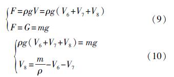 式中:h為直筒底部距離浮球浸在水中時(shí)水面的高度。由于浮球在水中的浮力等于它自身的重力,由此可得: