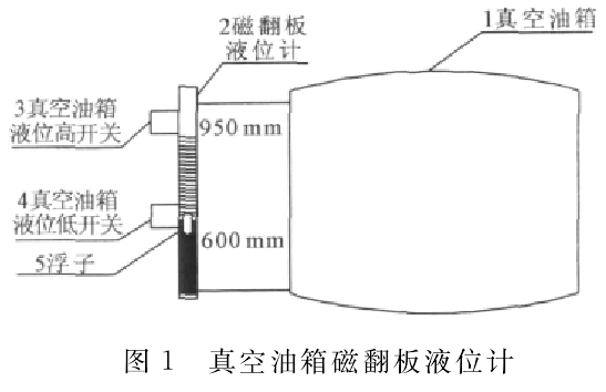 密封油真空油箱液位顯示采用防爆汽油罐液位計(jì),設(shè)置2個(gè)微動(dòng)開(kāi)關(guān)(干簧管液位開(kāi)關(guān))作為液位高低報(bào)警。微動(dòng)開(kāi)關(guān)一個(gè)磁鐵安裝在一個(gè)干簧片上,浮子與磁鐵相互作用,磁鐵微微轉(zhuǎn)動(dòng)帶動(dòng)簧片的動(dòng)作,從而使液位開(kāi)關(guān)的觸點(diǎn)斷開(kāi)(或閉合),實(shí)現(xiàn)開(kāi)關(guān)狀態(tài)的轉(zhuǎn)變。油位正常時(shí)磁翻板顯示油位為950mm。