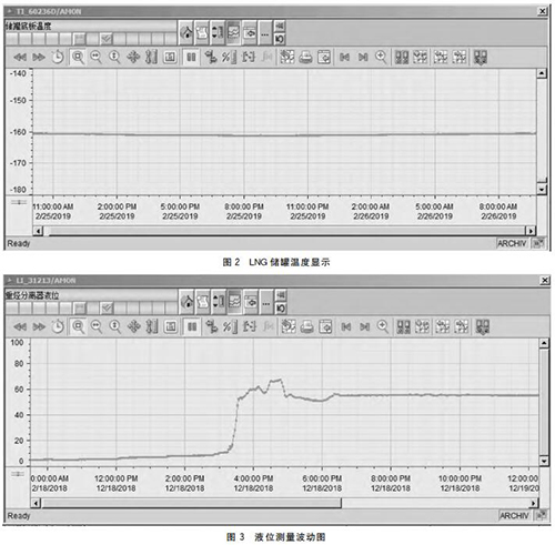 然后利用多孔法蘭(結(jié)合LNG項(xiàng)目的實(shí)際情況來(lái)選擇法蘭的孔數(shù)以及尺寸大?。?,將其接到LNG罐頂?shù)臏囟茸兯推鹘泳€箱內(nèi)部,再使用多芯電纜把4~20mA信號(hào)發(fā)送到控制系統(tǒng)。現(xiàn)場(chǎng)安裝RTD熱電阻建議選用雙支,方便以后檢修更換。圖2為LNG儲(chǔ)罐溫度顯示。