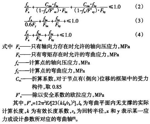 (2)UC值是美國ANSI/AISC《鋼結構設計手冊》針對鋼結構物體承受壓縮彎曲等多種組合載荷聯(lián)合作用時所采用的綜合機械強度性能的度量指標。