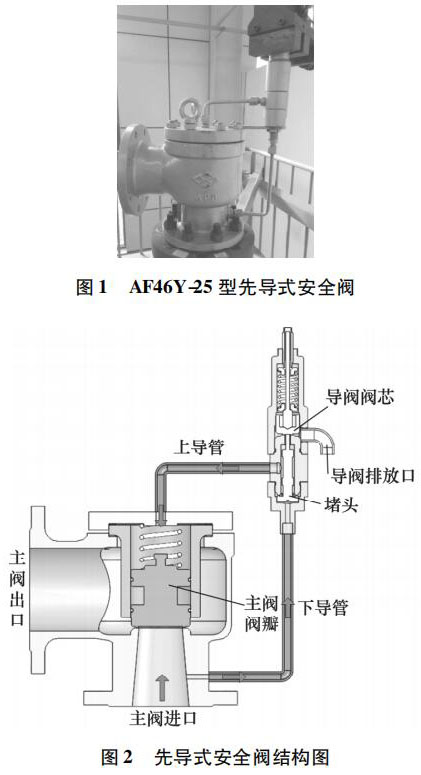 苯酚液位計常見的故障包括: 主閥導閥泄漏、導閥超壓不動作、主閥未隨導閥動作。主閥導閥泄漏失效原因: 密封面臟污或損傷,零部件卡阻、密封墊圈老化變形; 導閥超壓不動作失效原因: 導閥密封面銹蝕粘合或材料變形、導閥彈簧過緊或卡阻、導閥下導管堵塞; 主閥未隨導閥動作失效原因: 主閥運動卡阻、導閥排氣量過小。然而,安全閥起跳不回座故障在試驗過程及工業(yè)現(xiàn)場也是非常常見的,國內(nèi)對于苯酚液位計起跳不回座失效分析的相關(guān)研究較少。本研究以某公司生產(chǎn)的 AF46Y-25 型苯酚液位計為研究對象,研究導閥結(jié)構(gòu)并分析其動作過程。在對其開展動作性能試驗時,發(fā)現(xiàn)該安全閥實際回座壓力遠低于標準要求,排放時間過長,回座失效。因此,對其進行受力分析,以探討回座失效的原因。