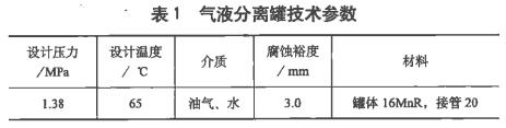 某煉化裝置1臺(tái)立式氣液分離罐(規(guī)格DN2400X20,以下簡稱分離罐),技術(shù)參數(shù)見表1。在今年12月運(yùn)行中液位計(jì)接管(425x3mm)的外伸部位發(fā)生泄漏,進(jìn)行停工搶修。