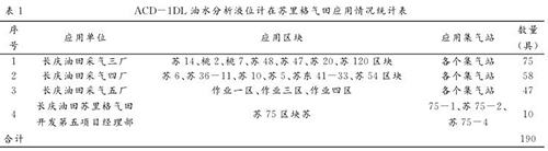 在試驗成功的基礎(chǔ)上,蘇里格氣田對 ACD-1DL 油水分析液位計進(jìn)行了全面推廣,截止到 2014年 11 月底,共在 87 座集氣站應(yīng)用 190 臺,各單位應(yīng)用情況統(tǒng)計見表 1 。