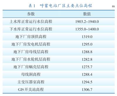 呼蓄電站廠區(qū)主要點位高程見表1。
