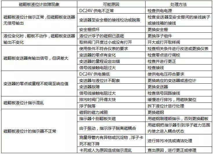 側(cè)裝式磁性液位計(jì)故障判斷及處理