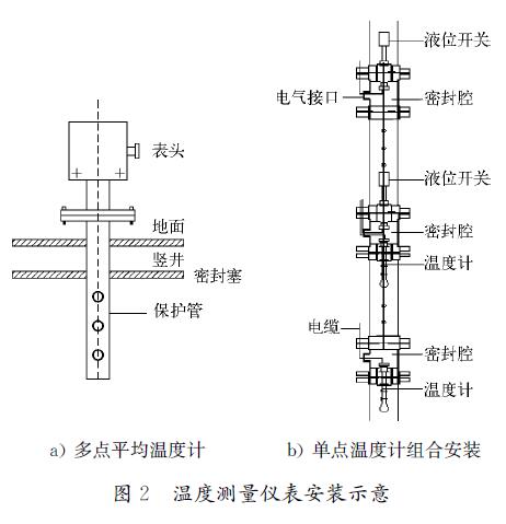 1)采用多點平均溫度計,安裝示意如圖2a)所示;