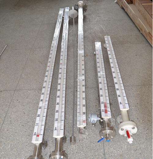 磁翻板液位計(jì)是本公司引進(jìn)、吸收國外同類產(chǎn)品,并加以吸收、消化、提高,按原化學(xué)工業(yè)部頒布的磁性液位計(jì)標(biāo)準(zhǔn)T21584-95研制生產(chǎn)的產(chǎn)品??捎糜诟鞣N塔、罐槽、球形容器和鍋爐等設(shè)備的介質(zhì)液位檢測。該系列磁性液位計(jì)可以做到高密封,防泄漏和適應(yīng)高壓高溫、腐蝕性條件下的液位測量,具有可靠的安全性,它彌補(bǔ)了玻璃板(管)液位計(jì)指示不清晰,易破碎的不足,不受高、低溫度劇變的影響,不需多組液位計(jì)的組合。全過程測量無盲區(qū),顯示醒目、讀數(shù)直觀,且測量范圍大。特別是現(xiàn)場指示部分,由于不與液體介質(zhì)直接接觸,所以對(duì)高溫、高壓、高粘度、有毒有害、強(qiáng)腐蝕性介質(zhì),更顯其優(yōu)越性。因此,它比傳統(tǒng)的玻璃管,板式液位計(jì)具有更高的可靠性、安全性、先進(jìn)性、實(shí)用性。