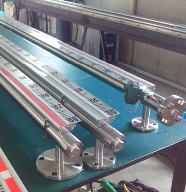 在管體的另一側(cè)可按用戶需要加裝電遠(yuǎn)傳變送器,將液位高度轉(zhuǎn)換成標(biāo)準(zhǔn)電流信號(hào)輸出,以供液位信號(hào)輸出,以供液位信號(hào)遠(yuǎn)傳至二次儀表進(jìn)行指示控制與檢測(cè)。