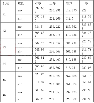 (1)從以上計算分析,數(shù)據(jù)沒有明顯的規(guī)律,主要的原因是每臺機的軸承油位傳感器安裝位置、傳感器本身的測量誤差、油槽內(nèi)部油流大小擾動等因素,影響各部軸承的油位數(shù)值,從而沒有很接近的數(shù)值變化規(guī)律,建議對油槽油位傳感器的零位進行校核,對精度不夠的傳感器進行更換。