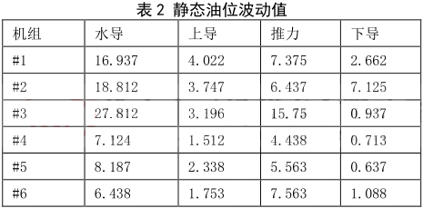 表 1 機組檢修后的靜態(tài)油位(以下油位單位均為:mm)