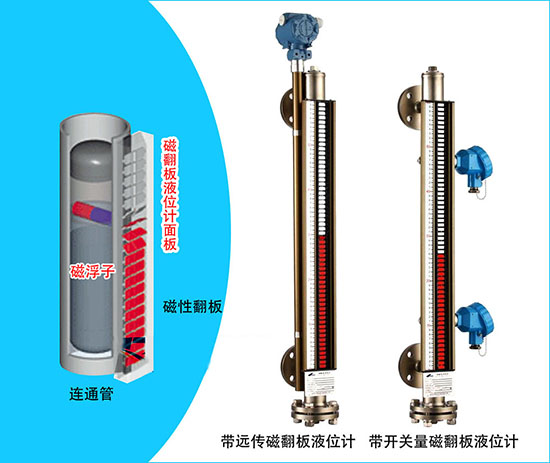 冷凝水液位計主要利用了浮力和磁性偶合來完成指示過程。當液位上升時,浮球在浮力作用下由下往上運動,翻柱受到浮球中磁感應力的作用翻轉180°,顏色由白色變?yōu)榧t色,面板上紅白翻柱的分界位置即為罐體中實際液位高度(如圖1),當液位下降時浮球由上往下運動,帶動翻柱翻轉,顏色由紅色變?yōu)榘咨?br />