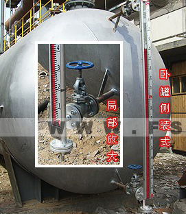 在管體的另一側可按用戶需要加裝電遠傳變送器,將液位高度轉換成標準電流信號輸出,以供液位信號輸出,以供液位信號遠傳至二次儀表進行指示控制與檢測。