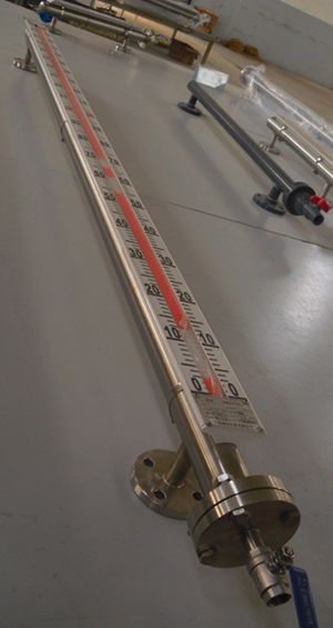 根據(jù)浮力原理,浮子在測量管內(nèi)隨液位的升降而上、下移動(dòng),浮子內(nèi)的永久磁鋼通過耦合作用,驅(qū)動(dòng)紅、白色翻柱翻轉(zhuǎn)180°,液位上升時(shí)翻柱由白色轉(zhuǎn)為紅色,下降時(shí)由紅色轉(zhuǎn)為白色,從而實(shí)現(xiàn)液位指示。
